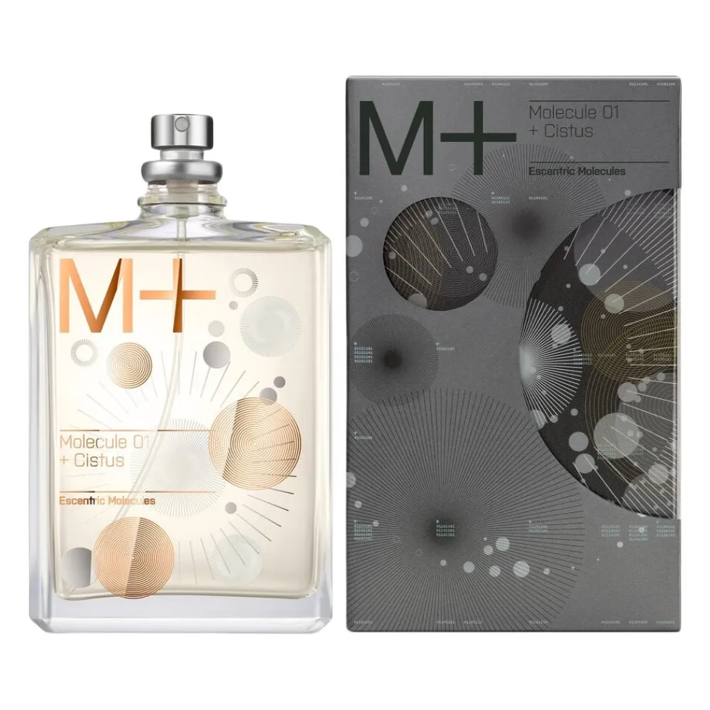 I Molecule 01 + Cistus møder Iso E Super den rå sensualitet i Cistus, hvilket skaber en strålende dybde et slør af varme, lethed og varighed. Cistus er en note, der bliver hængende som varme på huden. Det er en harpiks, tappet fra en vild middelhavsbusk klistret, gylden og intens. Duften minder om labdanum, men med en lysere karakter som amber badet i sollys. Røgede, mineralske og læderagtige undertoner tilfører en jordforbindelse til dens sødme.