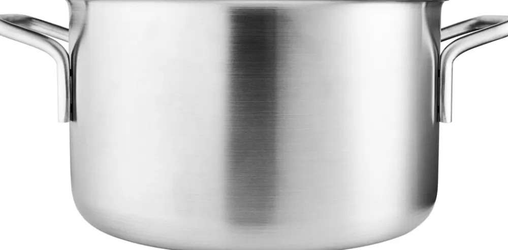 Gryden forener Eva Trios klassiske formsprog og velkendte kvalitet med næste generations forbedringer og materialer. Indersiden er belagt med et iøjnefaldende mønster, der består af rustfrit stål øverst og keramisk Slip-let® belægning nederst. Denne kombination mindsker risikoen for, at maden klæber eller brænder fast, samtidig med at belægningen er så hårdfør, at du trygt kan anvende metalredskaber uden risiko for at beskadige den. Grydens korpus er fremstillet af en kombination af 85-90 procent genanvendt post-consumer rustfrit stål og 100 procent genanvendt post-consumer aluminium. Den unikke Multi-layer 3-lags teknologi sikrer hurtig opvarmning, jævn varmefordeling og en hård yderside, der modstår slid og brug. Gryden tåler ovnbrug op til 400°C og er velegnet til alle varmekilder, inklusive induktion. Den kan nemt rengøres i opvaskemaskinen eller med en stålsvamp. Designet er baseret på det klassiske Ole Palsby/Eva Trio-design fra 1977, hvilket sikrer, at gryden fortsat byder på de velkendte Eva Trio-kvaliteter såsom kolde greb, hældekant, stabelbarhed og kompatibilitet med låg og andre dele af Eva Trio-serien.