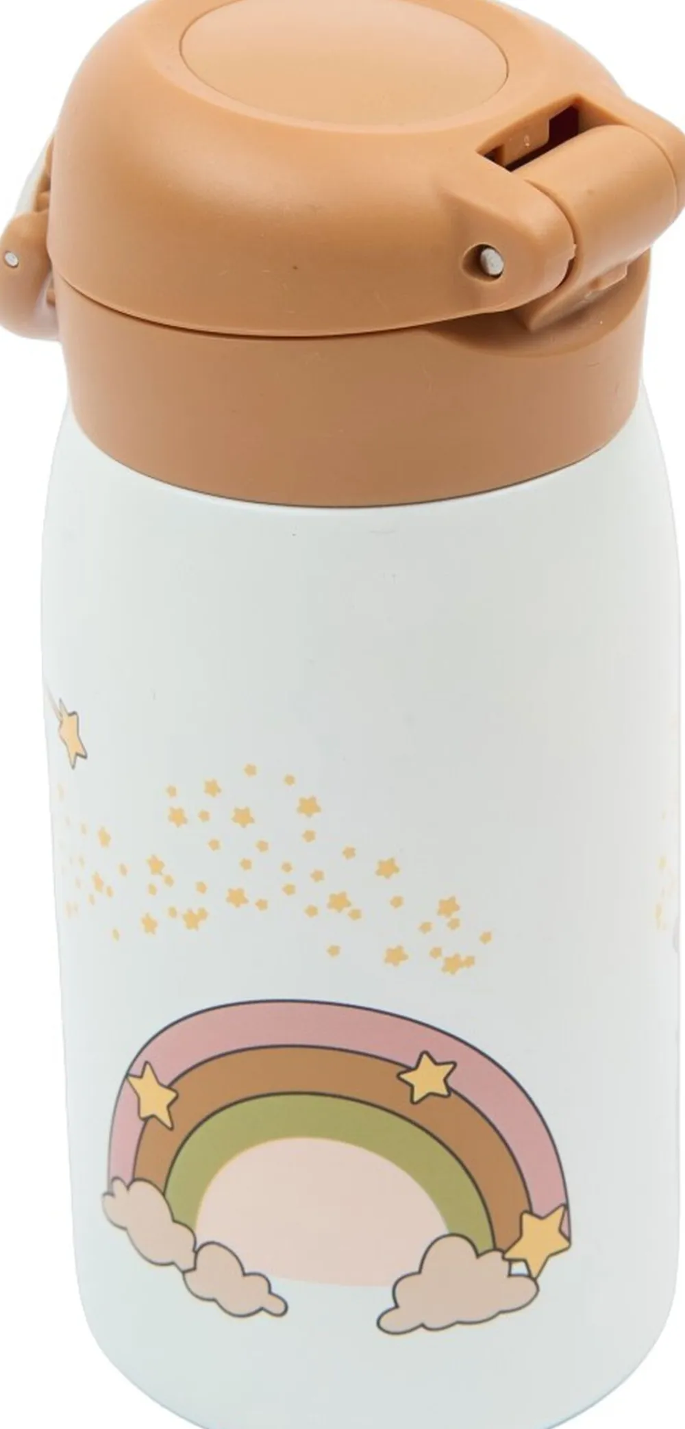 Fabelabs vandflaske er perfekt at tage med på farten eller i børnehave og skole. Vandflasken er nem for de små at bruge og drikke fra med den nemme, men sikre åbning, der forhindrer, at vandflasken åbner sig inde i skoletasken. En drikke tud er tilføjet til sikker drikning og den passer perfekt ind i siderne på vores nye Rygsæk – Stor. Vandflasken rummer 320 ml og er lavet af 18/10 kvalitets rustfrit stål og BPA-fri PP-plastlåg og silikonesegl. Vandflasken holder drikkevarer kolde i 24 timer og varme i 10 timer og modtager hverken eller afgiver smag under brug. Pleje og brug: Vask vandflasken i koldt eller varmt vand med en blød svamp eller børste for at rense indersiden. Hold vandflasken ren for at undgå lugt og opbevar vandflasken uden låget skruet på for optimal tørring. Til grundig rengøring kan du fylde vandflasken med varmt vand indeholdende 10 % eddike i 30 minutter og til sidst rengøre med rent vand og en blød børste. Advarsel: Brug den ikke til kulsyreholdige drikkevarer, salte supper osv. Rengør ikke vandflasken i opvaskemaskinen, da det vil reducere den termiske effekt. Brug ikke slibemidler eller abrasive rengøringsmidler. Fødevaresikker – EU Standard, LFGB – Fødevarekvalitetstest, DG CCRF – Fødevarekvalitetstest Ikke egnet til børn under 4 år