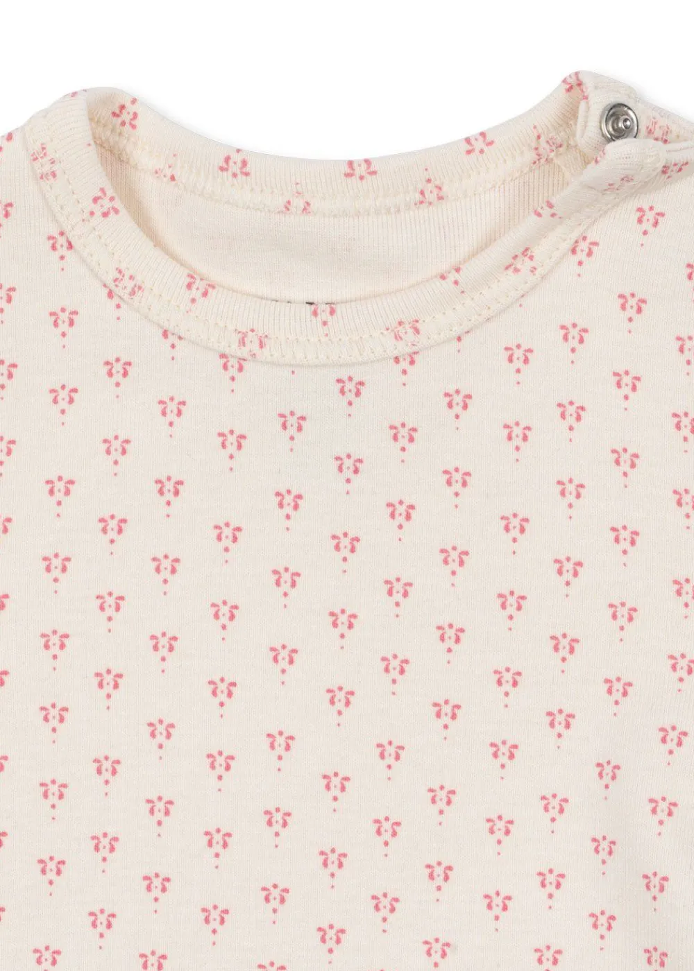 Denne bodysuit i økologisk bomuld er en blød, strækbar og utroligt behagelig musthave i din babys garderobe. Designet med en klassisk ribstrikket hals og trykknapper ved skulderen for nem påklædning