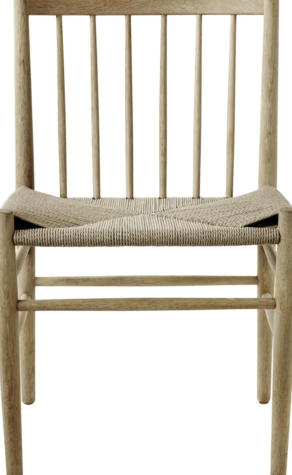 J80 Spisebordsstol uden armlæn designet af Jørgen Bækmark Jørgen Bækmarks J80 stol er indbegrebet af de kvaliteter, der var med til at definere FDB Møblers guldalder: Den er åbenlys funktionel, komfortabel og med et tidløst design, der understreger det møbelhåndværk, som er ledetråden i Jørgen Bækmarks arbejde. De drejede egestokke og det flettede sæde udstråler den naturlige kvalitet og det materialevalg, der er mindst lige så aktuelt i dag, som da stolen blev skabt i 1950’erne. For generationer har den været det sikre valg til spisestuen, hvor både design og komfort blev værdsat. Men den har også været brugt i andre sammenhænge, hvor man har brug for en god siddeplads. > J80 Jørgen Bækmark spisebordsstol uden armlæn Designer: Jørgen Bækmark Type: Spisebordsstol Model: J80 Materiale: Eg Farve: Natur Behandling: Lakeret Vedligeholdelse: Aftørres med opvredet klud Leveres samlet: Samlet Ryghøjde i cm: 82,0 Sædedybde i cm: 37,5 Ydermål på ben, i cm: 50,0 Mål: Højde x Bredde x Dybde: 82,0×50,0x50,1 Kan stables: Nej