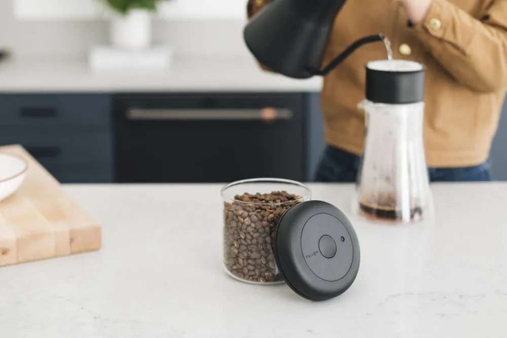 Hold kaffen friskere i længere tid. Denne lufttætte beholder har en enkel drejemekanisme til at fjerne luft og forhindre oxidering, der forlænger kaffens levetid to gange.