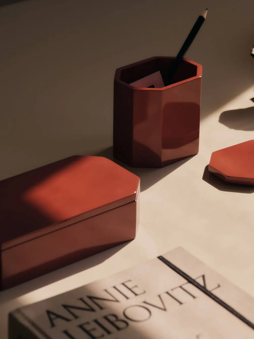 Sæt et personligt præg på dit hjem med Nova Æsken. Den er fremstillet af FSC®-certificeret bambus og er overfladebehandlet med højglanslak. Den er ideel til opbevaring af skriveredskaber, smykker og andre hverdagsting. Den alsidige form og det legende udtryk gør den til en gennemtænkt opbevaringsløsning i alle former for indretning.