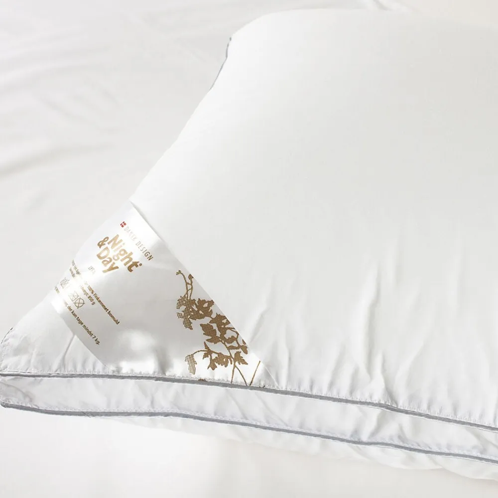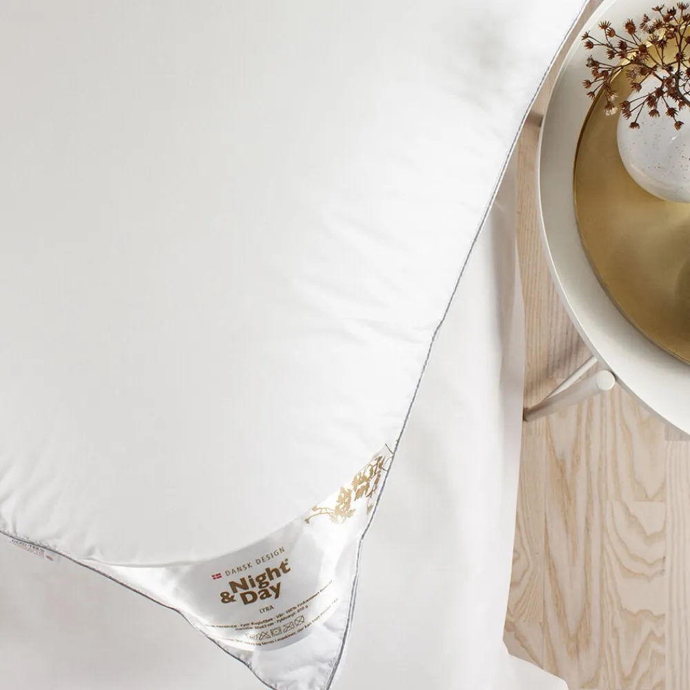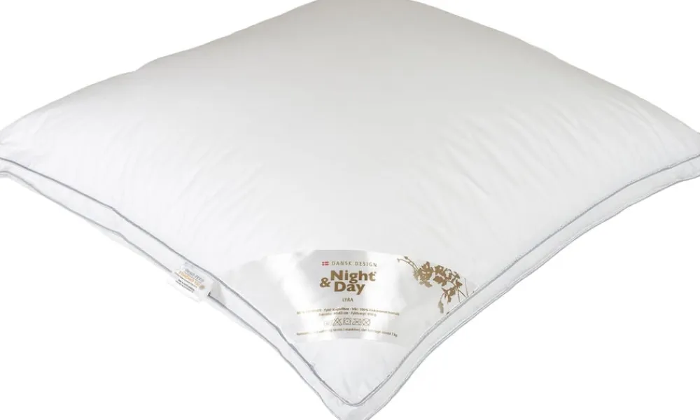 En god og fyldig fiberpude LYRA fra Night & Day fyldt med 850g lette og bløde kuglefibre i et ekstra blødt bomuldsbetræk. Puden har en lynlås, så du kan justere på fyldet og højden på puden. Puden kan vaskes ved 60 grader.