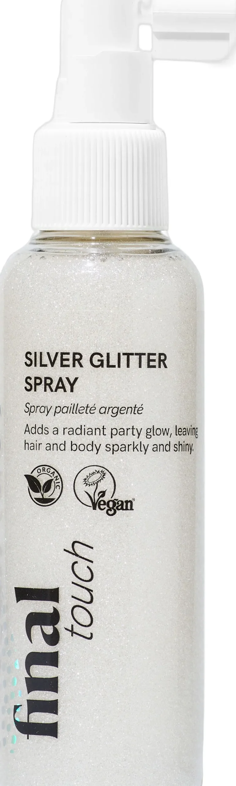 Tilfører en skinnende glød og efterlader hår og krop glitrende og strålende. Få et skinnende festlook med denne lette, ikke-klæbende formel. Ultrafin sølvglimmer tilfører en strålende glød og efterlader hår og krop glitrende og skinnende. Rig på naturlig og økologisk indhold fra bl.a. gojibær, hyldebær og mangoekstrakt for ekstra næring. Anvendelse: Ryst godt. Påfør i tørt hår eller hud. Obs: Glitter kan overføres til tøj.