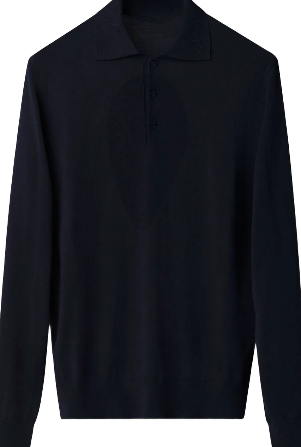 En polotrøje fremstillet af 100 % ekstra fin merinould, strikket i 14 gauge maskesting af traditionsrige strikkere i Italien. Den er designet med en struktureret strikket krave og manchetter og afsluttet med perlemorsknapper og har en glat finish og letvægtsfølelse – en raffineret strik, der er ideel til afslappet påklædning og smarte lag på lag.