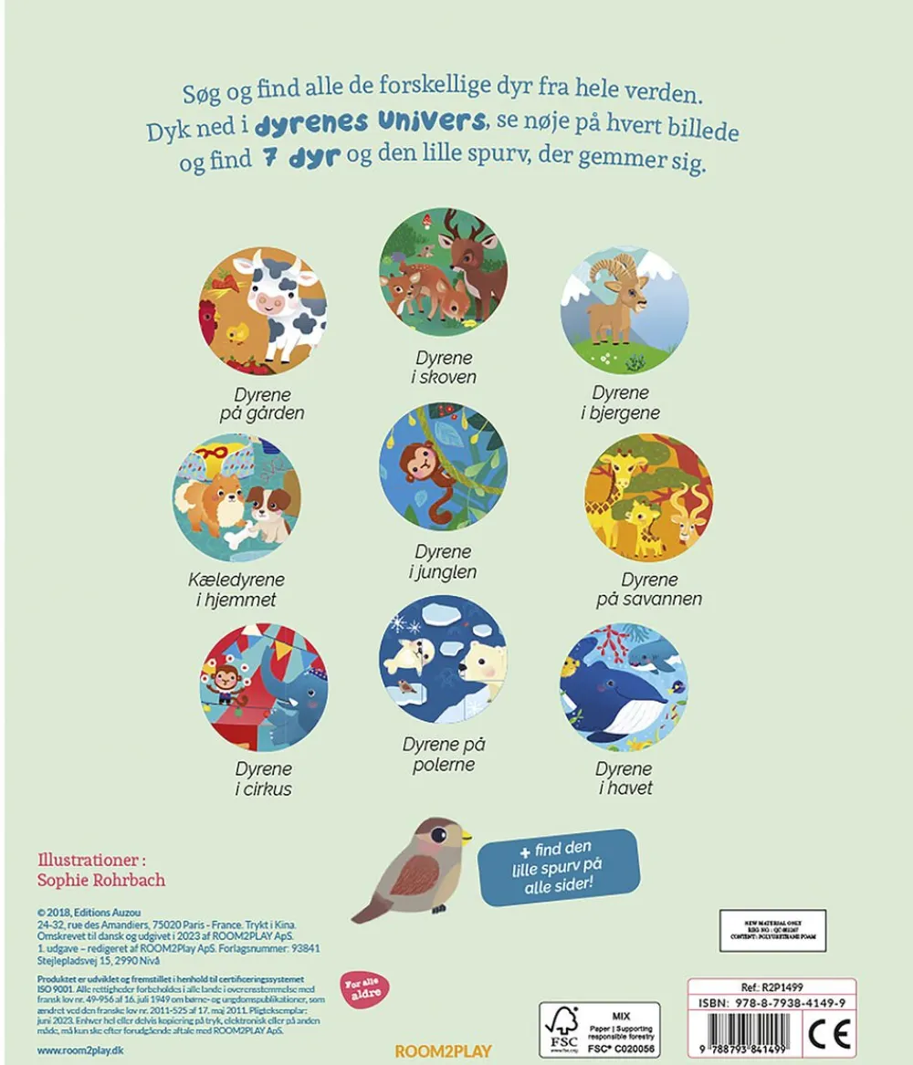 Sød og lærerig SØG og FIND bog på 18 sider med fine illustrationer.