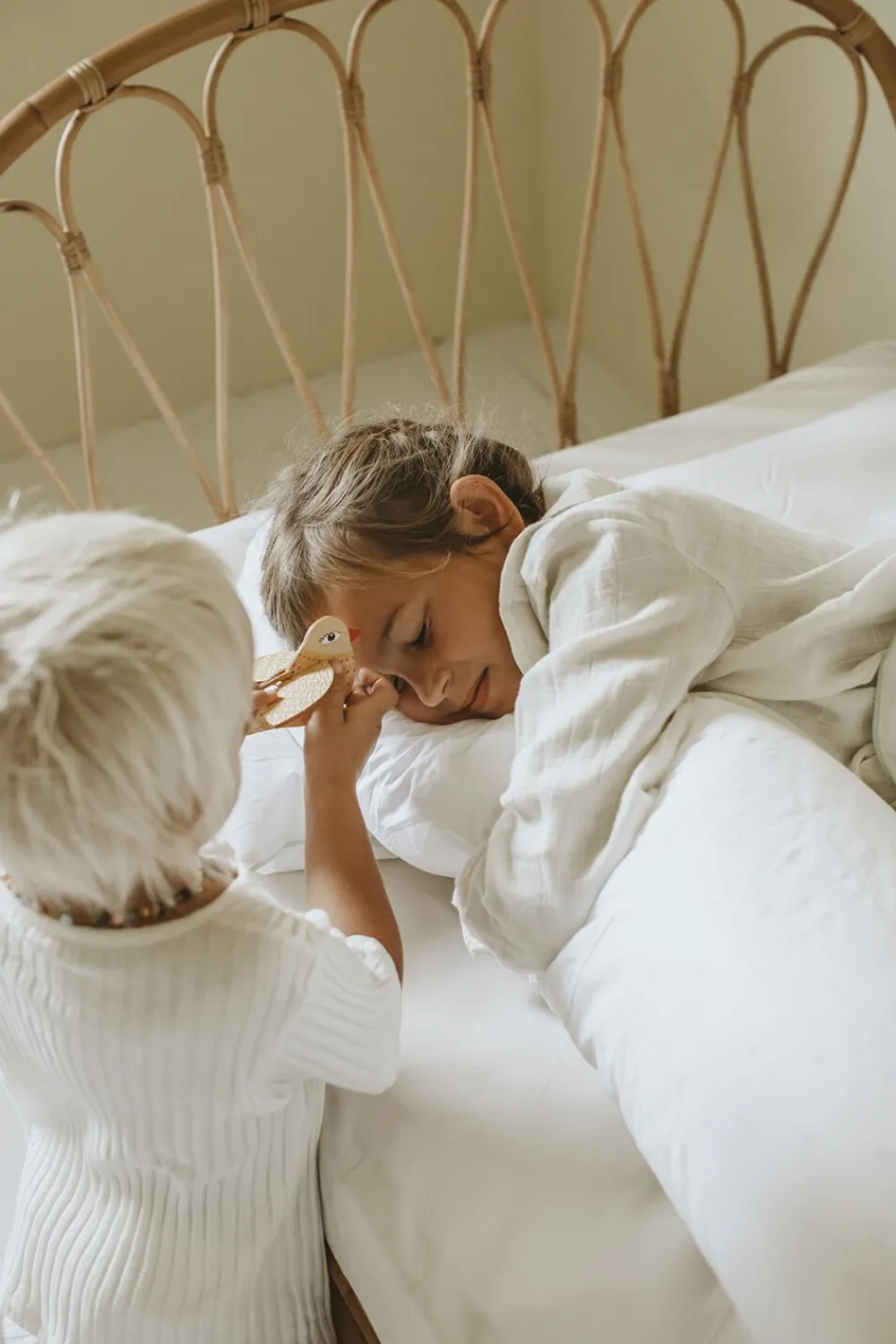 Comfort-I Junior, en støttende multipude, for hele familien. Fossflakes Comfort-I Junior er designet til at hjælpe dig med at slappe af og finde ro. Når du placerer benet på puden, aflastes knæ, hofte og lænd, så kroppen kan slappe af. Eller placér armen ovenpå puden for at aflaste en træt skulder. Den kan med fordel også bruges som lændepude i sofaen eller sengen. Skab tryghed for junior ved at bruge den som krammepude, eller slå jeg sammen ned med Comfort-I Junior til en hyggestund.