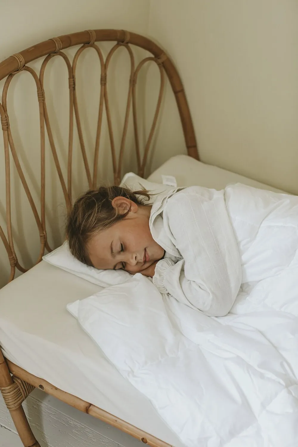 Fossflakes Juniorpude og dyne føles naturlig blød og behagelig. Luftlommer i fyldet lader luften cirkulere om kroppen og sørger for at dit barn holder en behagelig temperatur natten igennem.
