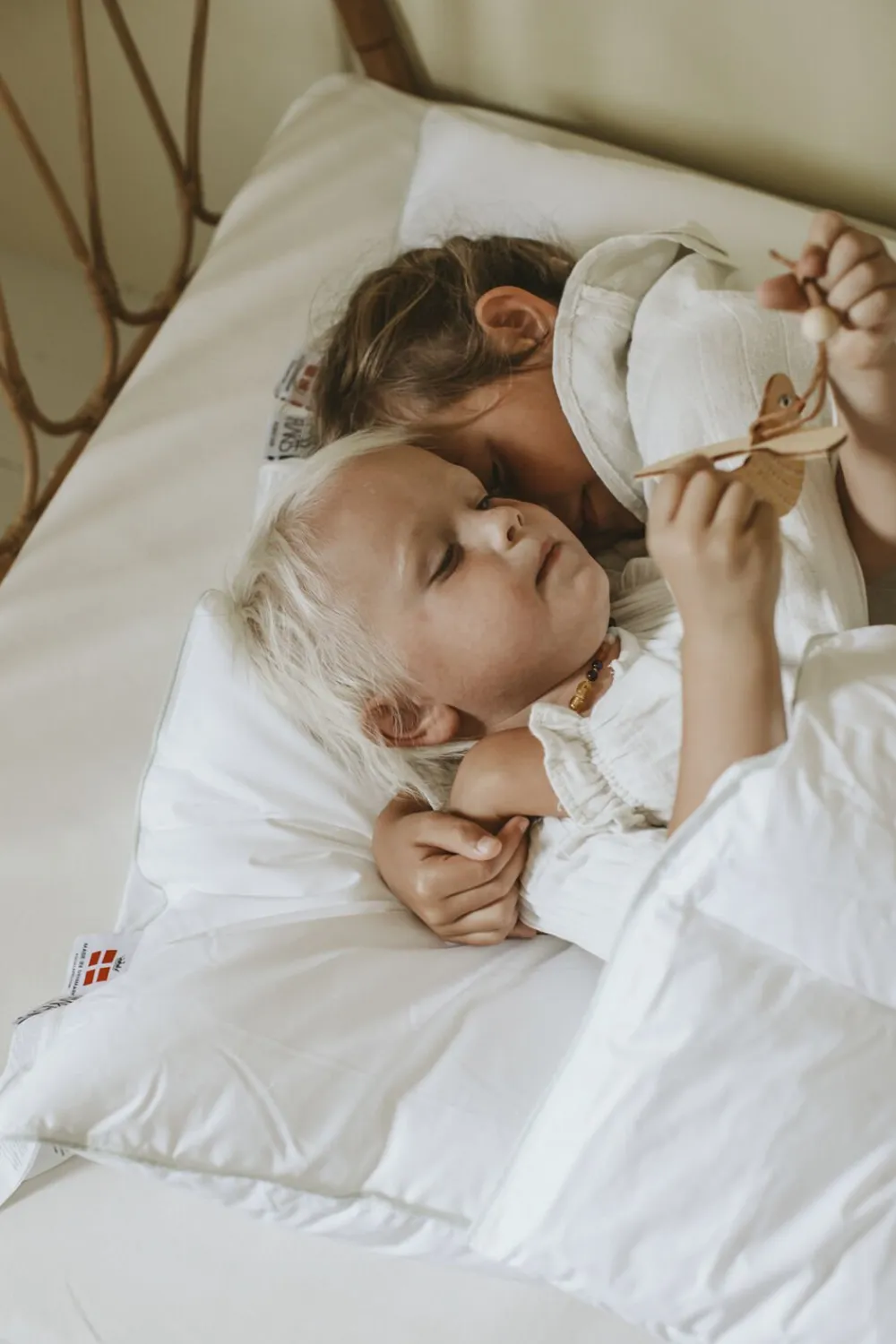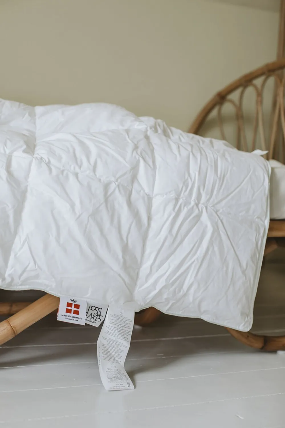Juniorsættet er nemt at vedligeholde og bevarer sin fylde, selv efter hyppig vask. Maskinvaskes ved 60° C og holdes derved fri for støvmider. Brug enzymfrit vaskemiddel og undgå brug af skyllemiddel. Tørrevejledning: Kan tørretumbles på uld eller silkeprogram. Tåler ikke høj varme. Er du i tvivl om din maskine kan overholde varmegraderne, så lad i stedet dit Fossflakes produkt lufttørre. Fossflakes er produceret i Danmark.