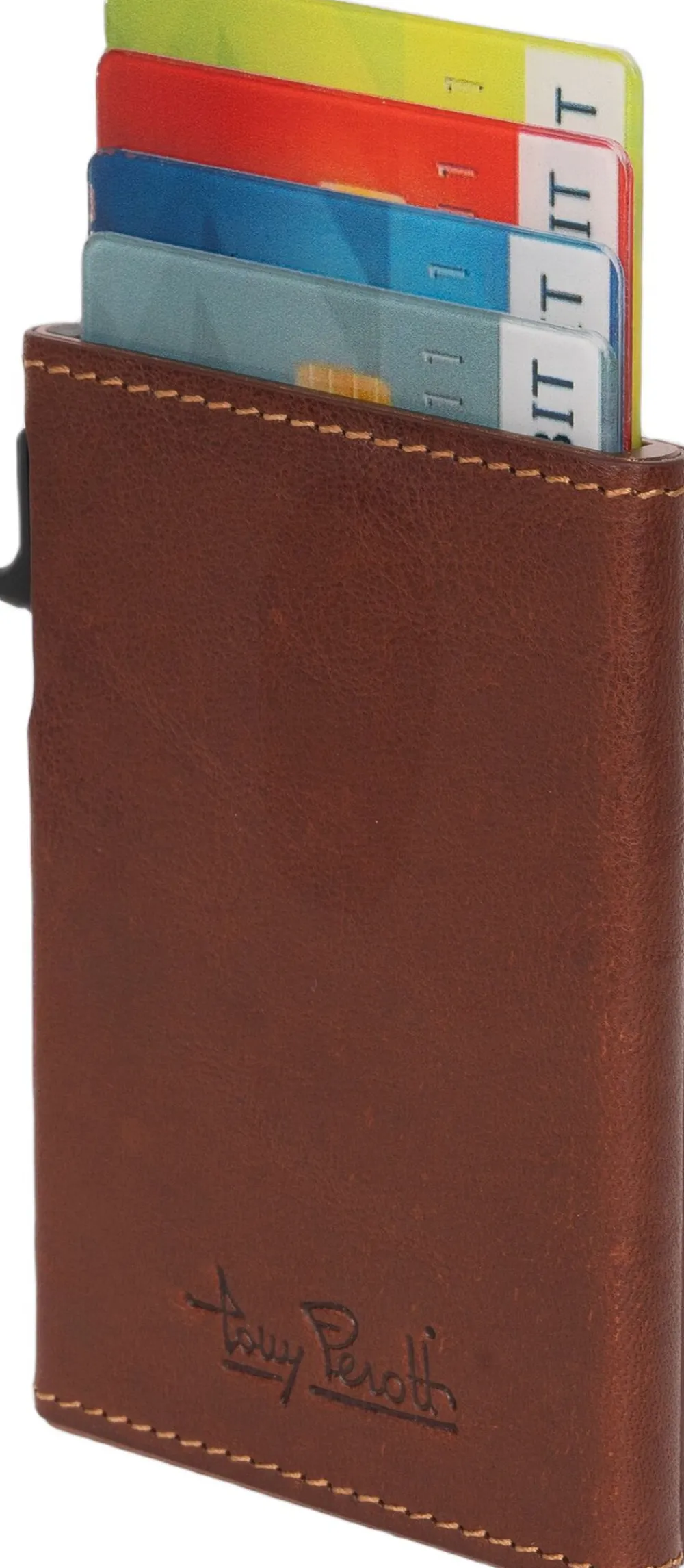 Denne Furbo kortholder er fremstillet i ægte italiensk koskindslæder og udstyret med en aluminiumsstøbt kortholder med pop-up system, der nemt kan rumme 4 til 6 kort. Kortholderen tilbyder ikke kun en stilfuld og sikker opbevaring af dine kort, men også praktiske opbevaringsmuligheder på ydersiden til sedler, kvitteringer eller et ekstra kort. Dette gør den ideel til hurtig adgang, når du tjekker ind i offentlig transport eller foretager kontaktløse betalinger. Furbo kortholderen beskytter effektivt dine kort mod fysisk skade, snavs og elektronisk RFID-tyveri af dine kortdata. Med sit elegante design og robuste funktionalitet er denne kortholder den perfekte løsning for den moderne kunde, der værdsætter sikkerhed og stil på farten.