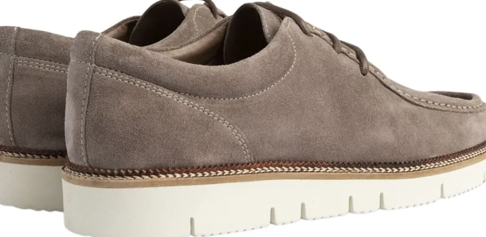 Disse Eilo-sko er håndlavede i Portugal af Premium ruskindsoverdele og er det perfekte par for en ubesværet, stilfuld finish til ethvert outfit. Mens overdelene har et klassisk Design fuldender en hvid Vibram-sål looket og hjælper med at give komfort hele dagen. – Overdel i Premium ruskind – Vibram Vi-Lite soling-teknologi – LWG læderarbejdsgruppecertifikat – Moc tå-detaljer foran – Polstret hælkappe – Rundbelagte bomuldssnørebånd – Logo på tunge – Antibakterielt Skum i sokken – Håndlavet i Portugal