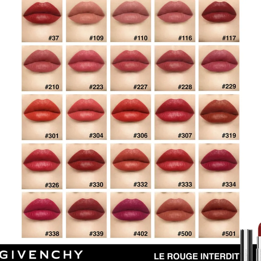 DET ULTIMATIVE MODETILBEHØRLe Rouge Interdit Intense Silk ligger i et genopladeligt læderetui og er et tidløst og elegant modetilbehør. Den moderne tekstur glider let over læberne som silke, samtidig med at den giver en lysende, halvmat finish. Og takket være formlen med kugler af hyaluronsyre og Acmella Oleracea-ekstrakt udglattes læberne øjeblikkeligt, og den indre fugt bevares i op til 24 timer for absolut komfort. Den intense farve er imponerende langtidsholdbar og forbliver levende i op til 12 timer**. Ved at kombinere en ultrafin film med den mest levende farve og ultimativ komfort omdefinerer Le Rouge Interdit Intense Silk reglerne for læbestifter. Mindre er virkelig mere! MESTEREN AF RØD Le Rouge Interdit Intense Silks højpigmenterede farvepalet fås i 25 silkebløde nuancer og indeholder de mest ikoniske og mest moderigtige røde farver. Oplev Givenchys brune signaturrød (N°37), den ultimative neutrale rød til alle (N°333) og den mest lysende rød med et strejf af gul (N°306). THOM WALKER´S VISION FOR VORES RØDE FARVER Vi har utrolige nuancer af rød, vovet rød, sofistikeret rød og pirrende rød. Vi kan forføre dig med en garderobe af røde nuancer. Rød læbestift er kraftfuld, der er aldrig et tidspunkt, hvor rød er umoderne. Det er som en sort kjole. Der er en kraft i bare at bære en rød læbestift, den klæder altid alle, ser altid fantastisk ud, og GIVENCHY tilbyder en rød farve til alle. Med rød læbestift kan du også bruge den på kinderne, det er det perfekte våben. Disse levende nuancer er opdelt i seks farvefamilier:-RED BEAN PASTE – tørrede rosa toner. -BRICK RED – gulbrune røde toner. -TOMATO RED – stærke røde toner -MAPLE RED – brune toner af rød -WINE RED – vinrød med vinrød tone-CARROT RED – orangefarvede røde toner-ROSA – bløde og levende nuancer af rosa-MILKY NUDES – naturlige rosa-beige tonerDEN MINDSTE DEL AF COUTURELe Rouge Interdit Intense Silks-æsken er lavet af ægte sort læder og har Givenchys 4G-emblem indgraveret, hvilket afspejler Matthew Williams´ nyfortolkning af logoet. Et modigt og tidløst fashion statement i alle detaljer.