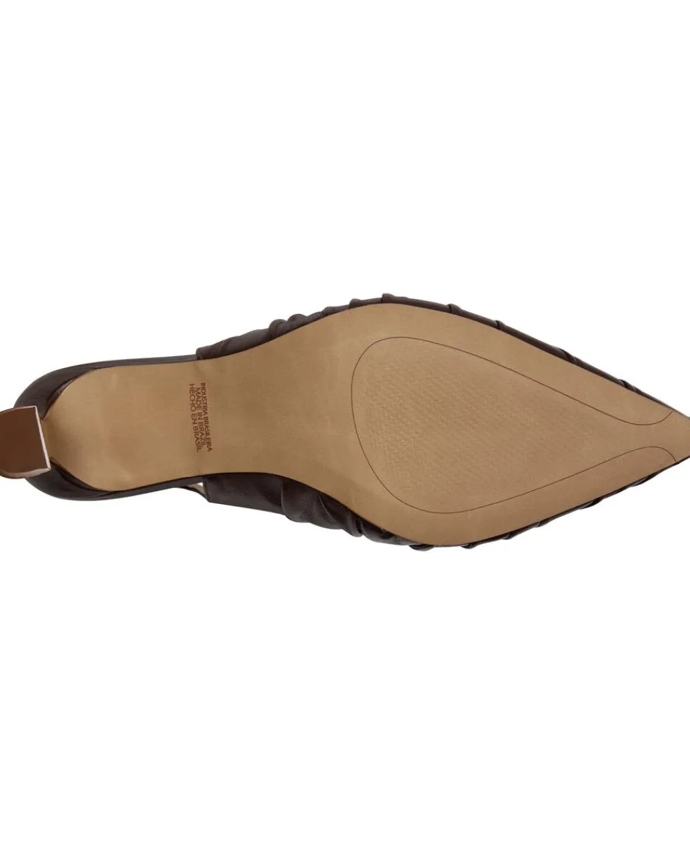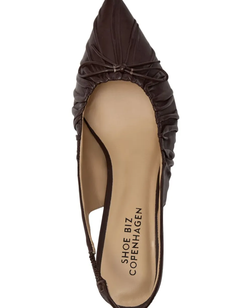 Elegant med et twist! Denne håndlavede brune lædersandal med rynkede detaljer og smart killingehæl giver ubesværet, smarte vibes – perfekt til både dag og aften. Hæl – 6 cm