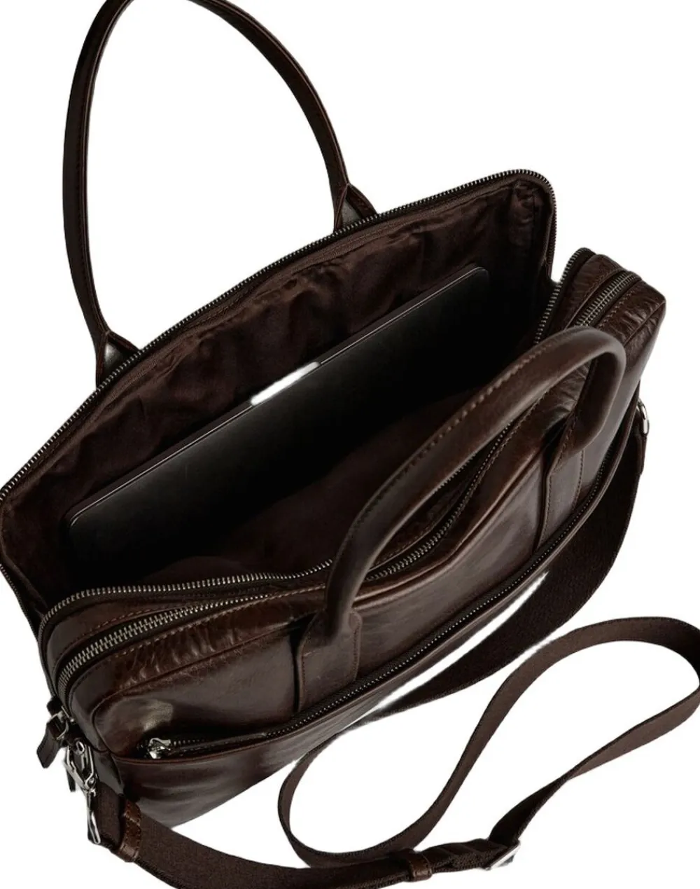 Grant Laptop Bag fra Markberg Man, er en elegant og funktionel computertaske i 100% Buffalo leather, med et tidløst og maskulint udtryk. Kvaliteten er LWG-certificeret og er en del af vores Zero Waste, hvor intet skind går til spilde i produktionen. Læderets struktur og nuance kan variere naturligt og giver tasken et unikt udtryk. Tasken er designet med fokus på kvalitet og brugbarhed ideel til både arbejde og rejser. Udvendigt har tasken en stor frontlomme, med plads til diverse ejendele. Dertil har den 2 gode hoved rum, der åbnes og lukkes med lynlås. Et stort rum og et polstret rum til laptopen. I det første rum er der en åben lomme, samt 2 rum til kuglepinde. På den anden side er der en lynlåslomme. I dette hoved rum er der plads til diverse dokumenter og andre ting, du har med på farten. Det bagerste rum, der kan åbnes og lukkes helt op fra begge sider, er tiltænkt din 14 eller 15 computer. Bagpå tasken er der en lynlåslomme, hvor der er en luggage strap du kan tage frem, men til fastgørelse på din kuffert, når du er ude og rejse. Tasken har en bred justerbar og aftagelig skulderrem. Dertil har tasken også to bærehanke, og taskens slidstærke for er i 100% polyester. Taskens hardware er i metal, som er belagt og så er det nikkelfri. Tasken måler 29 cm x 41 cm x 7,5 cm.