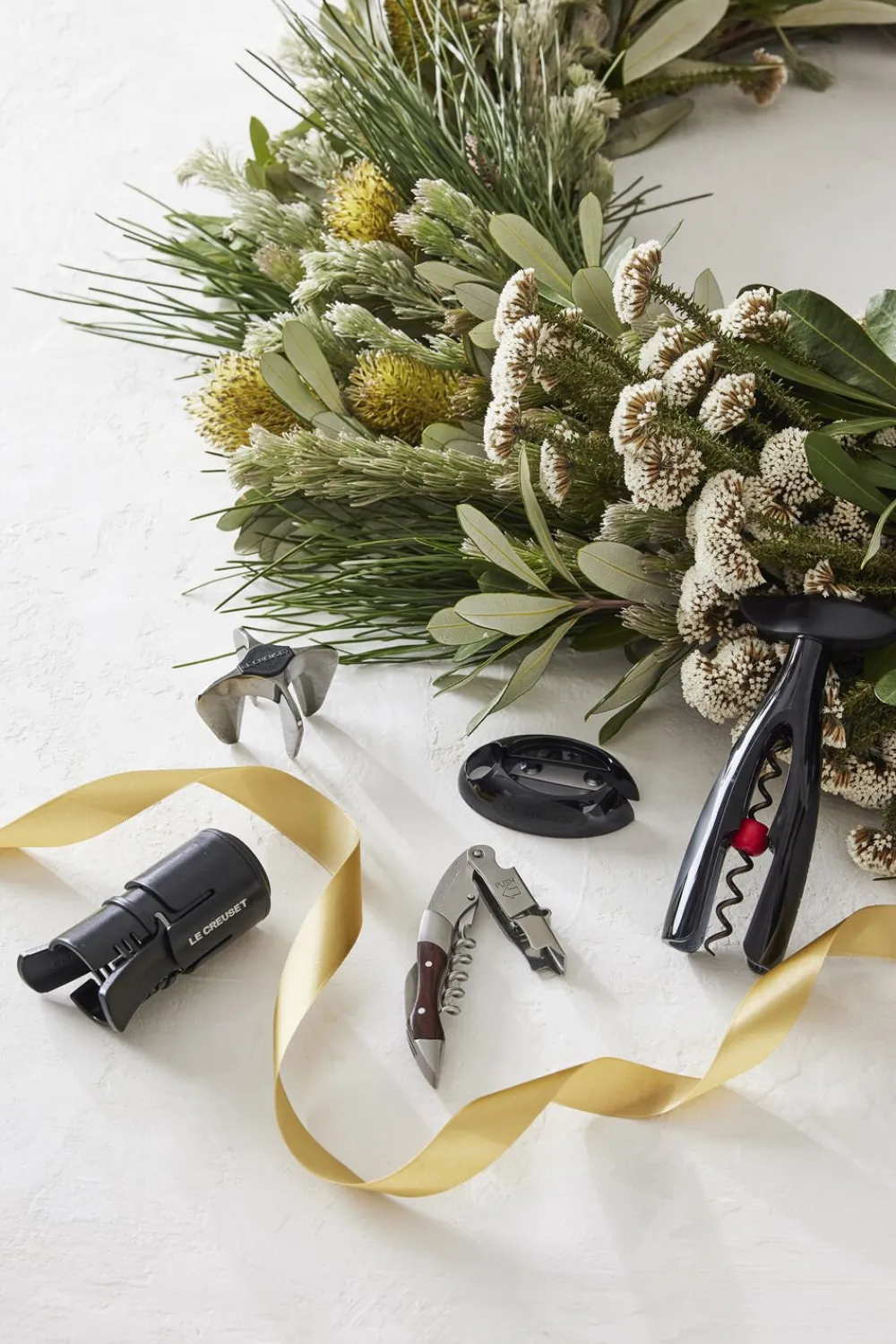 Le Creuset Gs200 gavesæt indeholder en proptrækker og en folieskærer, der er essentielle værktøjer til vinelskere. Dette sæt er designet til at gøre åbningen af vinflasker til en leg. Proptrækkeren og folieskæreren er begge fremstillet af holdbart plastmateriale, der sikrer langvarig brug. Den sorte farve giver et stilrent og moderne udseende, der passer ind i enhver borddækning. Med en størrelse på 99cm er dette sæt praktisk og nemt at opbevare. Begge værktøjer ligger godt i hånden, hvilket gør dem lette at bruge, selv når du åbner flasker med sværere korker. Le Creuset er kendt for deres kvalitet og funktionalitet, og dette sæt er ingen undtagelse. Det er ideelt til både daglig brug og særlige lejligheder, hvor du ønsker at imponere dine gæster. Uanset om du er en erfaren vinentusiast eller blot nyder et glas vin i ny og næ, vil dette gavesæt være en værdifuld tilføjelse til dit køkkenudstyr. Det er også en fremragende gaveidé til venner og familie, der sætter pris på vin. Le Creuset Gs200 gavesæt kombinerer funktionalitet med et elegant design, hvilket gør det til et must-have for enhver vinelsker. Oplev glæden ved at åbne din yndlingsvin med stil og lethed med dette praktiske sæt fra Le Creuset.