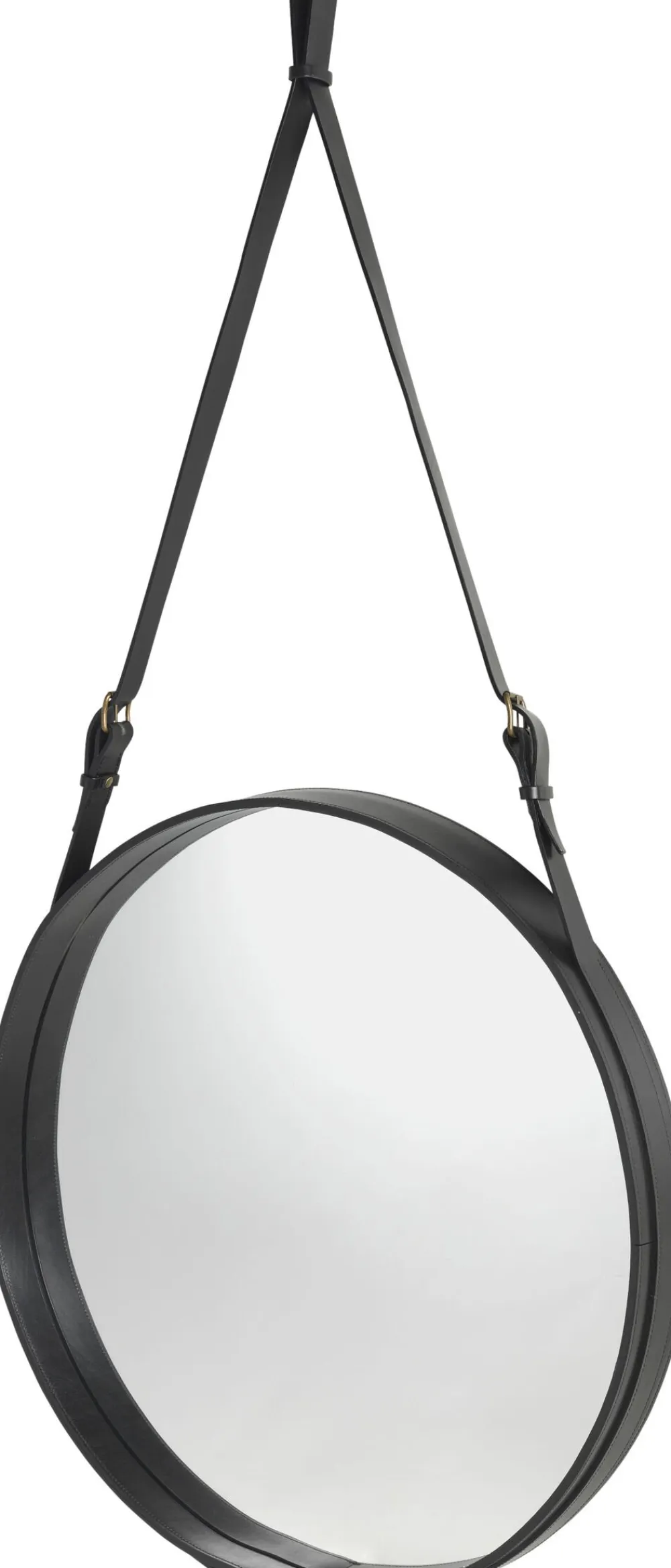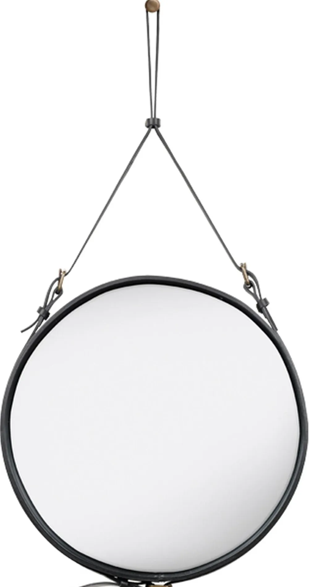 Art Deco er en eklektisk kunst og design stil, der begyndte i Paris i 1920’erne og blomstrede op internationalt gennem 1930’erne ind i 2. Verdenskrigs æra. Jacques Adnet er møbeldesigner og er bedst kendt for sit Art Deco modernistiske design, og et ikon af fransk modernisme. Adnet er kendt for sine avantgarde design, og var en af de første til at integrere metal og glas i strukturen og udsmykningen af møbler. Hans stil er indbegrebet af luksus. I 1950 dannede Adnet et partnerskab med det franske modehus, Hermes, hvor han udviklede en samling af læderbetrukne møbler og boligtilbehør. Derfor lavede han det runde læder spejl med messing hængsler. Udover de bemærkelsesværdige læder og messing detaljer er spejlet også enestående, da remmen, der holder spejlet, er den direkte dimension direkte i forhold til spejlet.