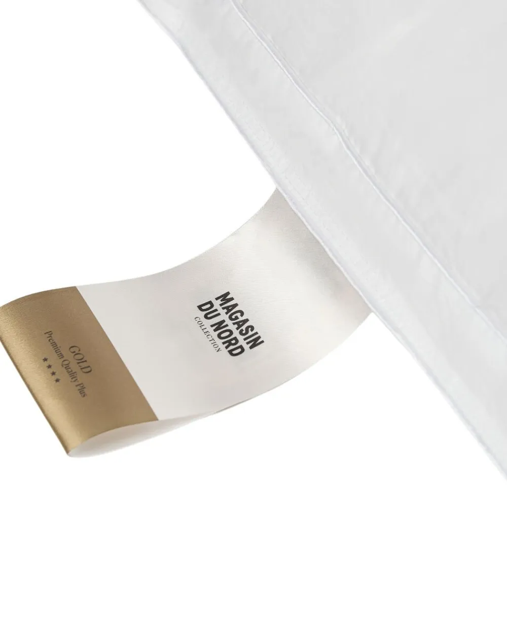Guld 3-Lags pude Ekstra Lav 60×63 cm: Efter en lang dag findes der simpelthen ikke noget bedre end at lande på en lækker og luftig pude, der får en til at drømme sig langt væk. Lækkert, afslappende og helt velfortjent. Føl dig oplagt hver dag med en hovedpude i luksusklassen. Magasin Guld 3-lags er en hovedpude bestående af de fineste moskusdun samt en kerne af ekstra bløde småfjer/dun. De 180 g moskusdun er godt placeret i pudens ydrekamre og gør puden lækker, blød og behagelig at ligge på. De 200 g småfjer/dun er placeret i pudens inderste kammer, så puden forbliver fyldig nat efter nat. våret er lavet af 100% Bomuld Satin, hvilket giver et lækkert blødt og åndbart produkt. Puden er deklareret af Astma-Allergi Nordic samt NOMITE-, Oeko-Tex- og Downpass-certificeret.