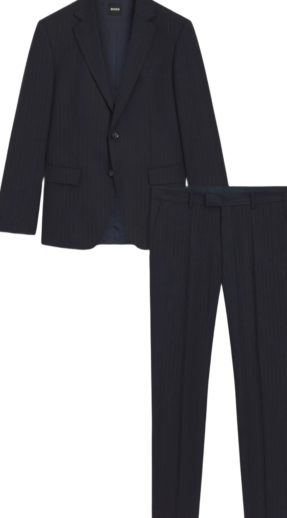 Invester i denne BOSS herretøj-udgave af det klassiske nålestribede jakkesæt. Dette jakkesæt i to dele er fremstillet i ny uld med naturlig stræk for ultimativ komfort og er mønstret med en lodret stribe for tidløs elegance. Den definerede pasform, de konstruerede skuldre og hakket revers skaber et strømlinet look. Dette produkt indeholder mindst 60 % bedre råmaterialer. Dette produkt er fremstillet af ansvarligt produceret uld. For os betyder ansvarligt indkøbt muldyrfrihed og opfyldelse af standarderne for de fem friheder for dyrevelfærd
