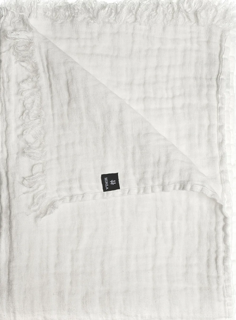 Hannelin tæppe er forvasket for et krøllet udseende, er sømmet på de lange sider og har frynser på de korte sider.