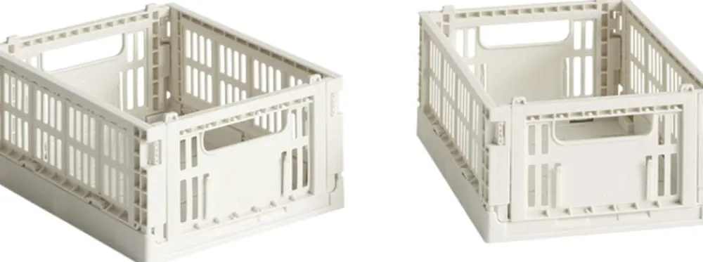 HAY Colour Crate Mini er en serie farverige opbevaringsbokse med et karakteristisk, perforeret Design. Minikasserne er fremstillet af 100 % Recycled plastikaffald i den mindste størrelse, der findes i Colour Crate-kollektionen, og de passer ind i de større kasser og kan stables oven på hinanden. De multifunktionelle kasser er velegnede til opbevaring og organisering af en lang række mindre genstande på hylder, borde eller i skabe.