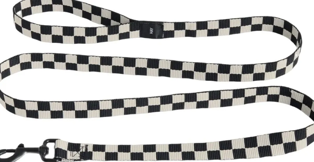 HAY Dogs Leash-Flat Check M/L-Sort, hvid