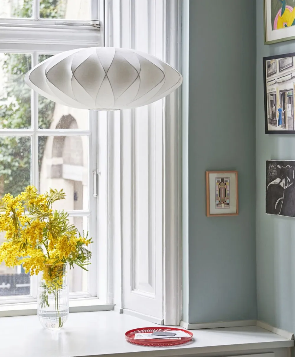 ‘The Nelson Saucer Crisscross Bubble Pendant’ er en del af ‘Nelson Bubble Lamp’-serien. Inspireret af svenske lamper designede George Nelson denne serie i 1952. Udover det bløde lys lampen giver, har den også et unikt mønster, som tilføjer en spændende form til lampeskærmen.
