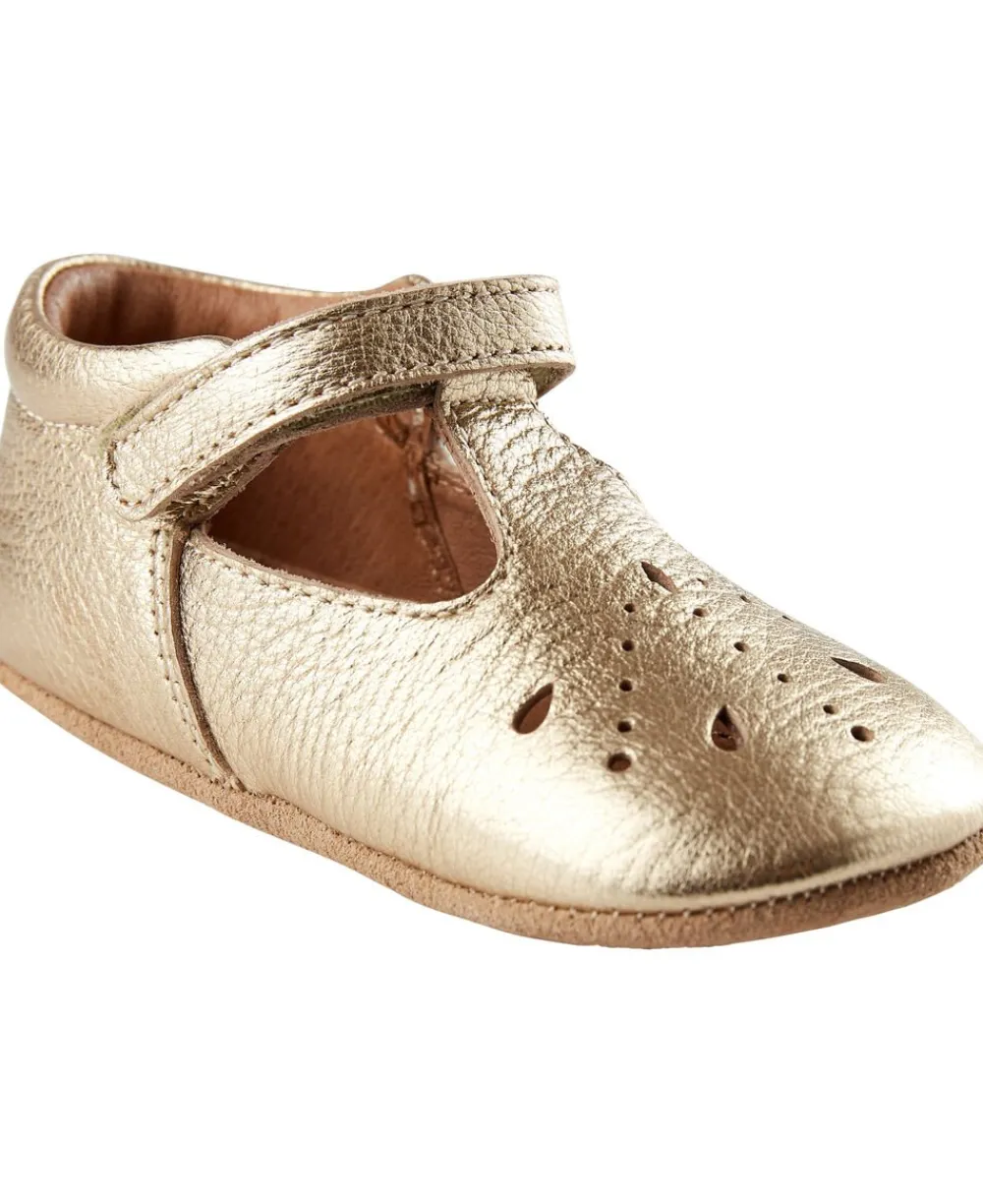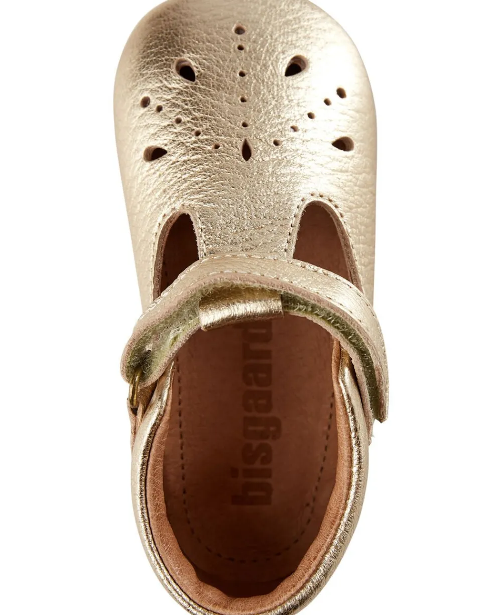 De fineste sko fra Bisgaard i det blødeste skind med hulmønster på fronten. Modellen er helt enkel med blød hælkant, velcrolukning samt blød, skridsikker gummisål.