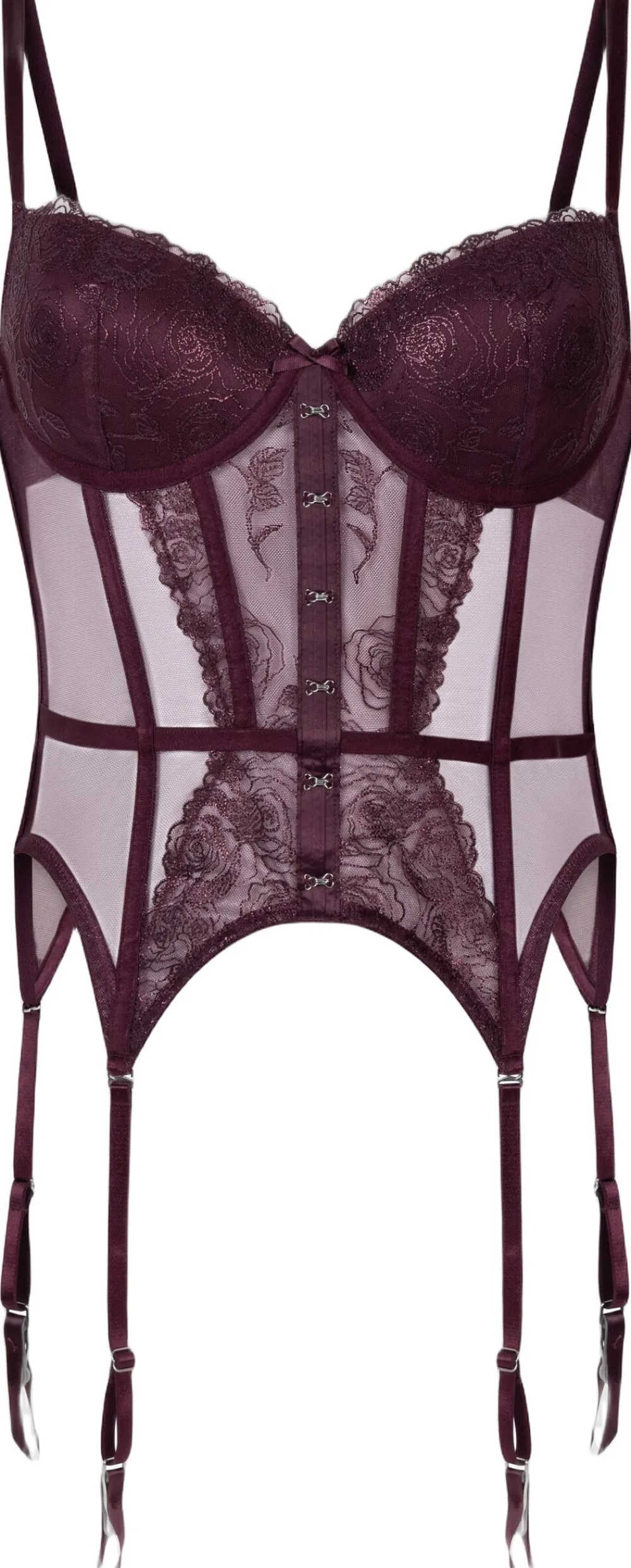 Træd ind i rampelyset med denne bustier, hvor struktur møder glitter. Den er designet med vatterede skåle med bøjle for et løft, og har glitrende mesh, der fanger lyset, og broderede blomsterdetaljer, der tilføjer et romantisk præg. Hofteholdere giver en forførende kant, hvilket gør denne del perfekt til styling med strømper eller lag-på-lag under en blazer for et dristigt modestatement. Fuldend looket med den matchende underdel.