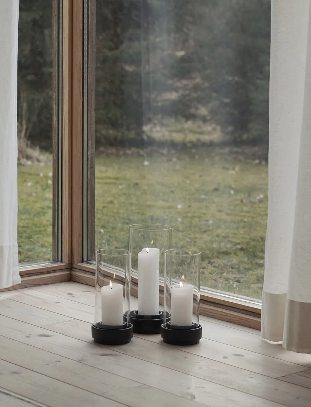 Med sin velkendte sans for enkelhed har Maria Berntsen designet disse stilrene hurricanes, der kan bruges året rundt som lyskilde i hjemmet, både udendørs og indendørs. Skulle hurricanen blive efterladt udendørs i regnvejr, sørger det smarte design for, at regnvandet løber ud af sig selv. Det sorte stentøj er vejrbestandigt og kan tåle at blive efterladt udendørs, også i frostvejr. Brug LED-lys, stearinlys eller paraffinlys som fyrfadslys eller bloklys. Lyset kan være diameter maks. Ø: 7 cm til den store Hurricane og maks. Ø: 6 cm til den lille.