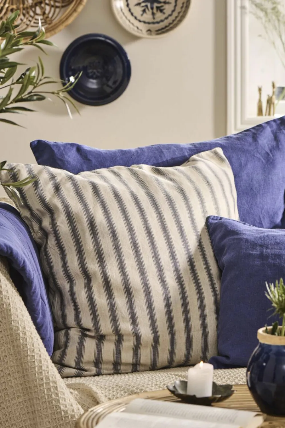 Ib Laursen Pude natur m/grå striber