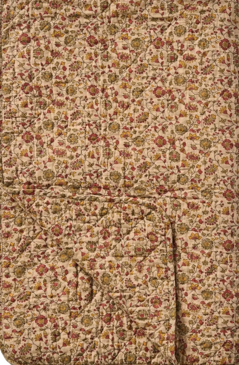 Ib Laursen Quilt brun m/røde, orange og grå blomsterranker Best