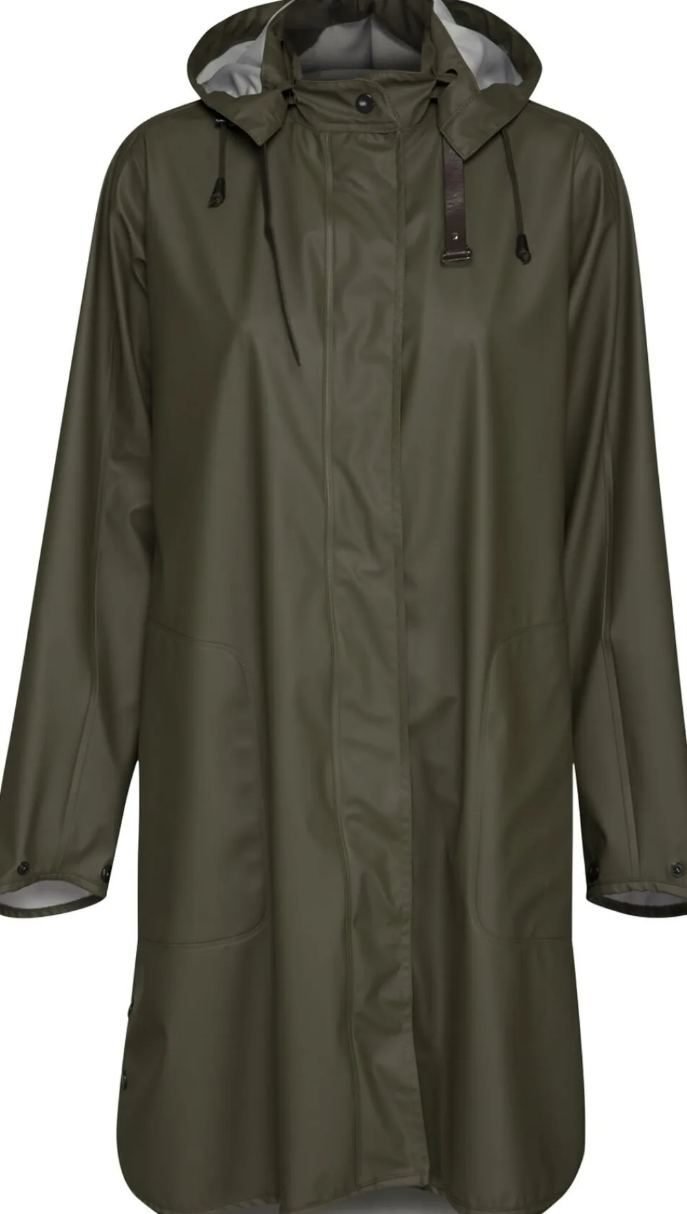 Vandtæt – W/P 5000 MM Gummieret PU-stof med trikot på bagsiden Blød og let kvalitet Sidelommer med klap Justerbare manchetter Stolpelukning med 2-vejs lynlås og skjulte trykknapper Svejsede sømme Aftagelig hætte Slidser i siderne med trykknapper for bedre bevægelighed Denne A-formede regnfrakke fra ILSE JACOBSEN HORNBÆK er en moderne fortolkning af den klassiske regnfrakke med løs pasform og detaljer, der gør den velegnet til brug året rundt. Bare tilføj en trøje eller et quiltet lag under den, når temperaturen falder! Regnfrakken er fremstillet i et let og raffineret, vandfast gummieret PU-materiale med trikot på bagsiden, der gør regnjakken ekstremt behagelig at have på. Regnfrakken har stolpelukning med 2-vejs YKK-lynlås og skjult trykknaplukning. Desuden er alle sømme svejsede for at gøre dem 100% vandfaste, så du ikke behøver at bekymre dig om, at der trænger vand ind, eller at du bliver våd. Ikke desto mindre er RAIN71 meget mere end bare en regnfrakke. Denne model har en aftagelig hætte, der er fastgjort med en vandfast strop i kunstlæder, to store sidelommer og justerbare manchetter med et lille logo på venstre ærme for perfekt pasform. Frakken er som skabt til regnvejrsdage. Uanset om du går tur, lufter hunden eller er ude at fiske, holder RAIN71 dig tør. Den er desuden ideel til cykelturen, da slidserne i siderne med trykknapper langs siderne muliggør ekstra bevægelse. Du kan vælge mellem to forskellige længder, afhængig af hvor høj du er, og et udvalg af såvel klassiske farver som sæsonfarver. Med RAIN71 kan du altid finde en regnfrakke, der passer til dig og resten af din garderobe. Materialer: 100% polyesterjersey med PU-overflade Funktionalitet: W/P 5000 MM Længde foran fra højeste punkt på skulderen: 94 cm Ryglængde fra højeste punkt på skulderen: 103 cm (str. 38)