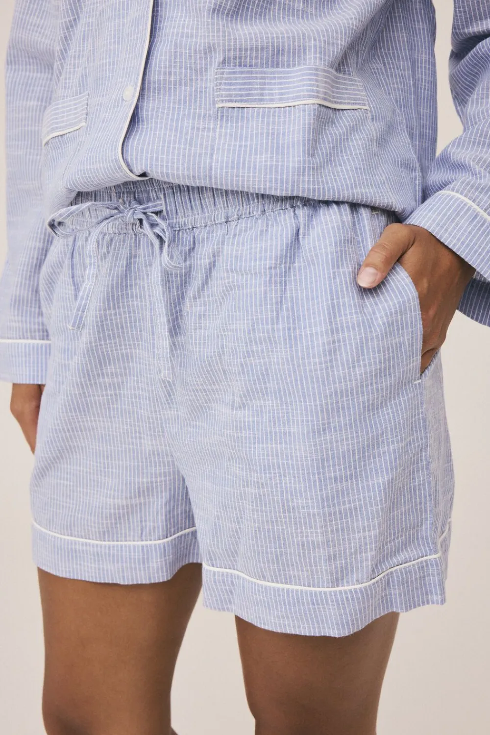 Shorts fra Magasin du Nord Collection i en blød og lækker 100% bomuldskvalitet med smalle striber. Shortsene har en løs pasform med elastik i taljen og bindebånd på fronten. Derudover har de praktiske lommer i siderne samt brede kanter forneden med pipingbånd. Kombiner dem fx med en overdel fra Magasin du Nord Collection for et komfortabelt og luksuriøst natsæt.