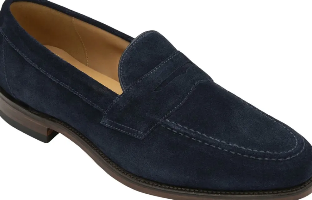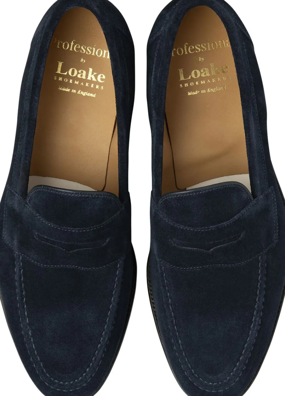 Imperial Navy Suede Penny Loafer med en svejset lædersål fremstillet i Storbritannien