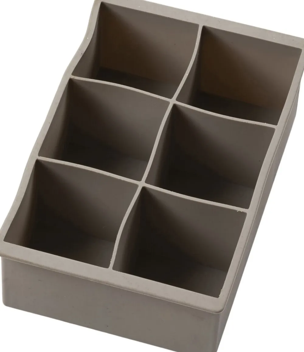 Isterningbakke i silikone til 6 ekstra store terninger, som holder drinken kold i længere tid. Terningerne måler 5 x 5 cm, og den fleksible silikone gør det nemt at få dem ud af formen. Velegnet til opvaskemaskine.