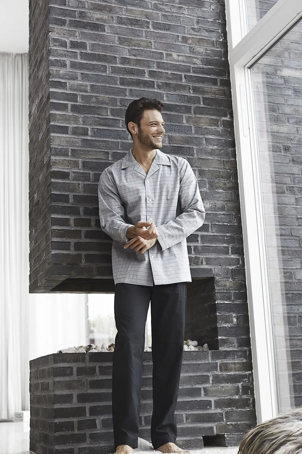 Dette lækre JBS Pyjamas-sæt med skjorte og tilhørende buks er lavet af 100% Bomuld, der sikrer en behagelig oplevelse for brugeren. Bukserne indeholder elastik i både top og bund.