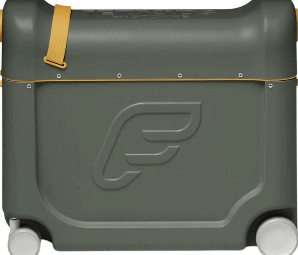 BedBox er verdens eneste ride-on kuffert til børn, der kan bruges som en flyseng eller benstøtte.