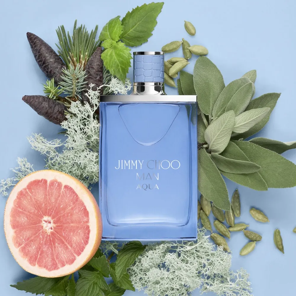 Jimmy Choo Aqua Man er en ny bølge af frihed. Duften af en lidenskabelig mand med en medfødt følelse af cool, og med en naturlig og ubesværet elegance. Et dyk i havet med et perfekt touch af surf, renhed og en hyldest til frihed. Træaftige noter og marine nuancer bringer minder om havets duft og horisont, mens man rider på den perfekte bølge. Top: krydret og friske facetter af kardamomme og grapefrugt Hjerte: akkorder af hav med geranium og salvie Bund: træagtig note af hav med et hint af saltet mos