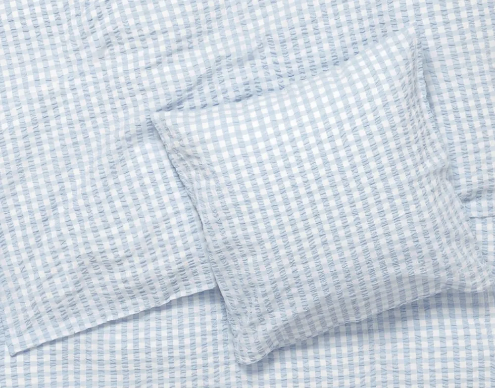 Sov godt! Bæk & Bølge er for mange lig med en god nats søvn i det blødeste bløde sengetøj hjemme hos mormor eller farmor. Og netop genkendelsens glæde er inspirationen til vores populære Bæk & Bølge-serie i 100% økologisk bomuld. Dynebetrækket lukkes med knapper, mens pudebetrækkene har kuvertlukning. Sengetøjet i den fine farvekombination lys blå/hvid er OEKO-TEX®-mærket og kan vaskes ved 60°. Fås også i farvekombinationerne gul/hvid, hvid/hvid, pink/hvid, grøn/hvid og mørk blå/hvid. Fås også til 140×220 cm enkeltdyne og til dobbeltdyne.