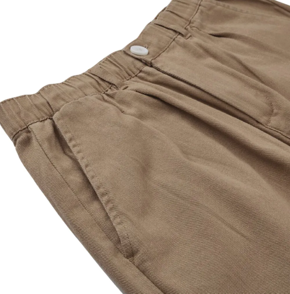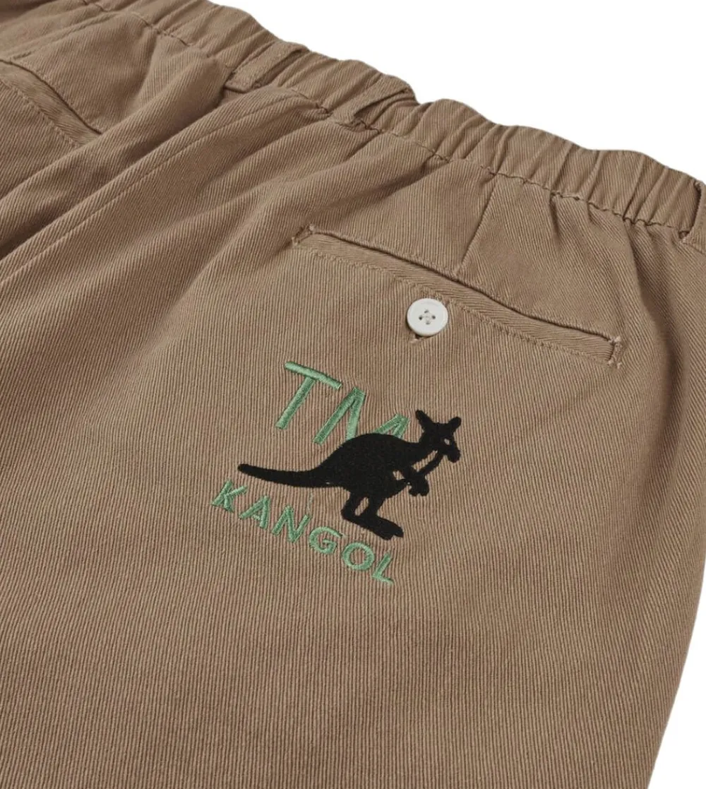 Modellen er løs hele vejen ned gennem benene, i livet er der kommet elastik, så de er behagelige at have på. Dertil finder du et større Kangol logo på højre baglomme.