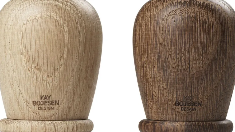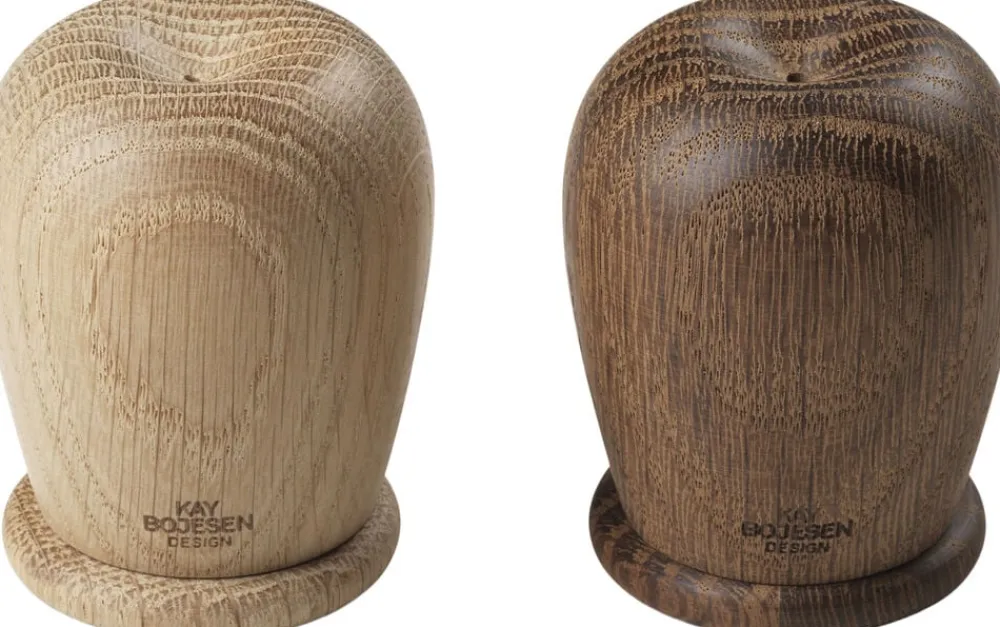 Elegant udformet salt- og pebersæt fra Kay Bojesen Menageri-serien. Sættet er drejet og sammensat af røget eg, der lader dig nyde træets smukke årer, som giver et skønt, unikt udseende. Træet har en fødevaregodkendt overfladebehandling, der gør det mindre modtageligt over for farveafsmittende fødevarer. Inspirationen til sættet kommer fra produkter til husholdningen designet af Kay Bojesen tilbage i 1940’erne, hvor han producerede smukke og anvendelige produkter i træ.