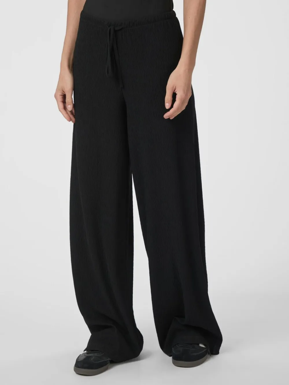 Bukser med lige ben med vidde. Bukserne har en justerbar snøre i livet, er lavet i et struktureret materiale og har en løs pasform. Modellen er iført størrelse 36.