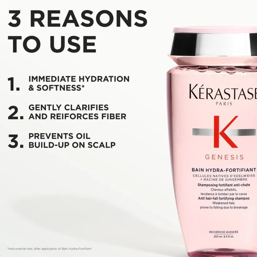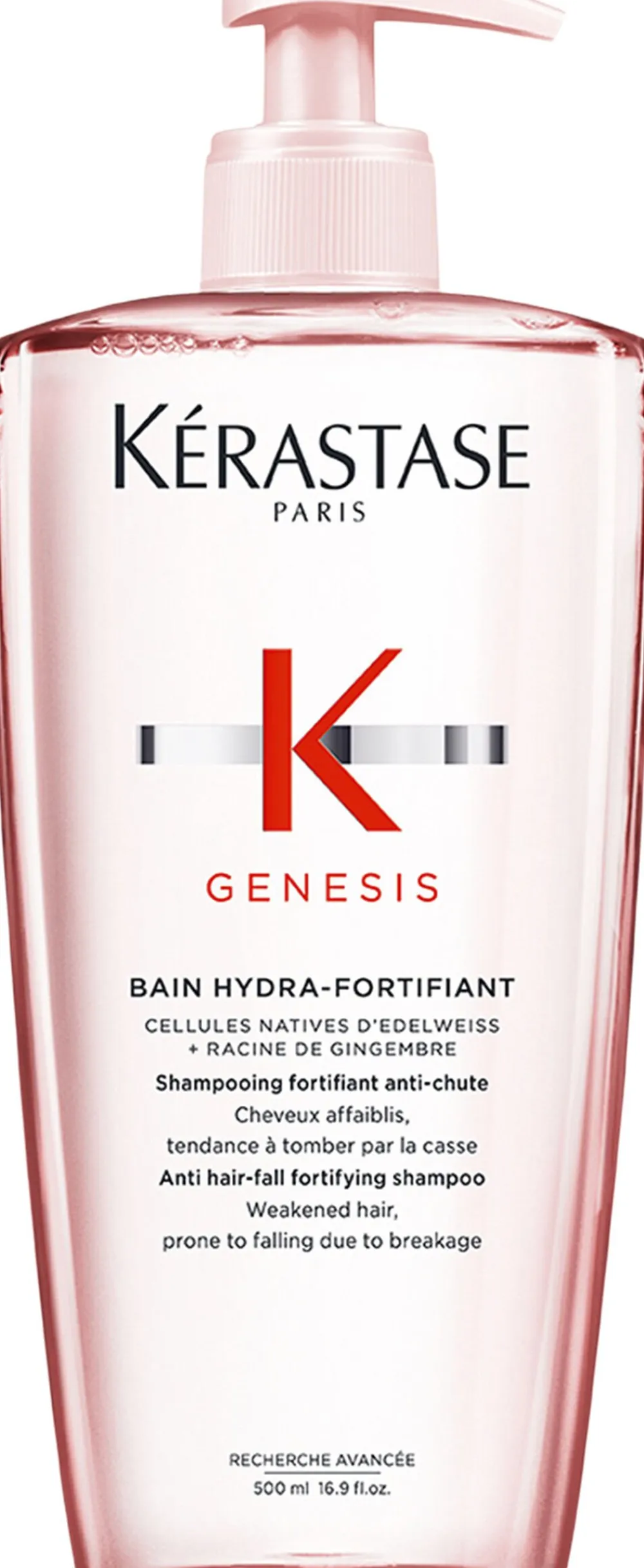 - Beriget med en kombination af ingefærrod og naturlige celler fra edelweiss, styrker hårfibrene og gør dem modstandsdygtige over for hårtab.