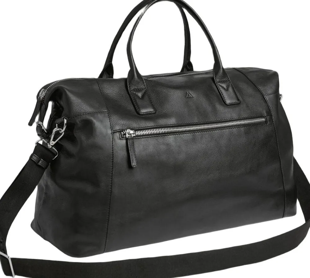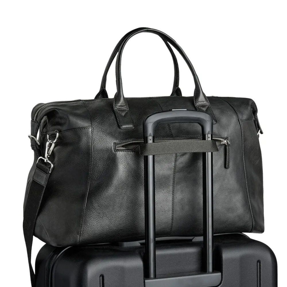 Kiefer Weekend Bag, 32L fra Markberg Man er en elegant og rummelig Weekendtaske i 100% blødt kalveskind. Et tidløst design med fokus på funktionalitet og kvalitet perfekt til både rejser og hverdag. Kvaliteten er LWG-certificeret og er en del af vores Zero Waste, hvor intet skind går til spilde i produktionen. Læderets struktur og nuance kan variere naturligt og giver tasken et unikt udtryk. På fronten har rejsetasken en stor synlig lynlåslomme, med plads til mindre ejendele. Det store hoved rum med lynlås, der kan rumme 32 liter, er der god plads til de ting du har med på rejsen, til træning eller til weekendopholdet. Indvendigt finder du også en lynlåslomme i den ene side. Bagpå tasken er der en lynlåslomme, hvor der er en luggage strap du kan tage frem, men til fastgørelse på din kuffert, når du er ude og rejse. Tasken har en bred justerbar og aftagelig skulderrem. Dertil har tasken to bærehanke, og taskens slidstærke for er i 100% polyester. Taskens hardware er i metal, som er belagt og så er det nikkelfri. Rejsetasken måler 50 cm x 30 cm x 21 cm.