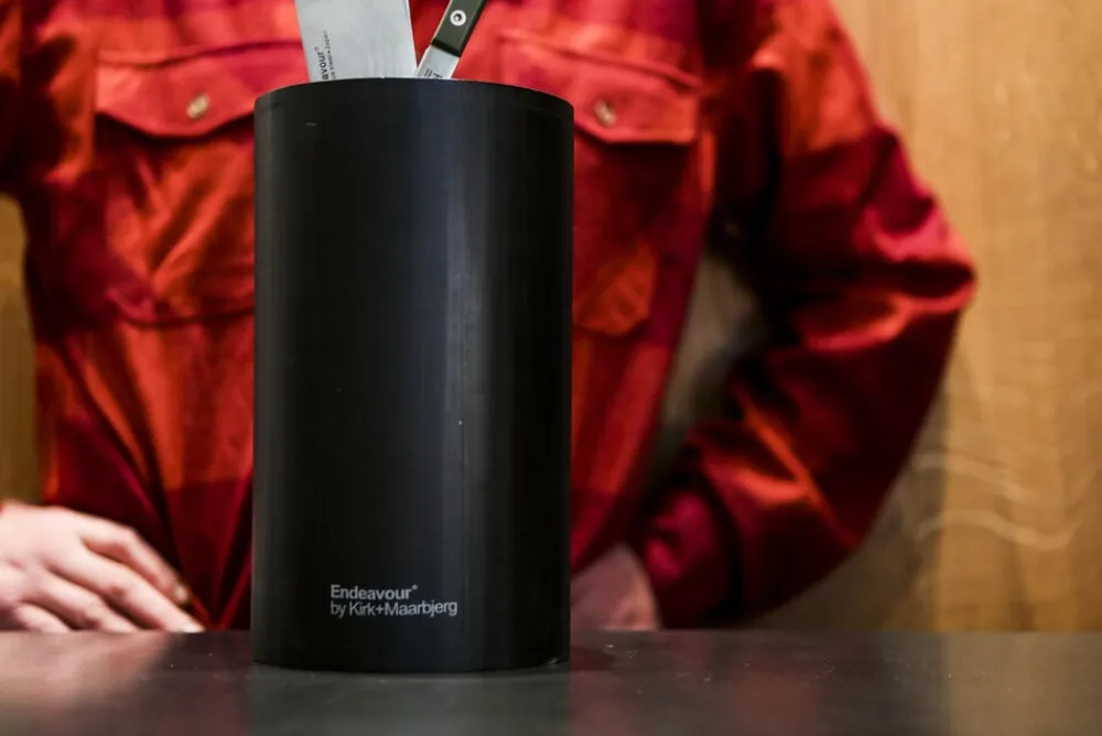 Knivholderen fra Endeavour er den første af sin slags, som tillader dig at stikke din kniv i en knivholderen, uden at bekymre dig om det er den rigtige plads. Der er fuld frihed til at sætte kniven – og så kan du tilmed rengøre din knivholder, lettere end du nogensinde før har kunne.