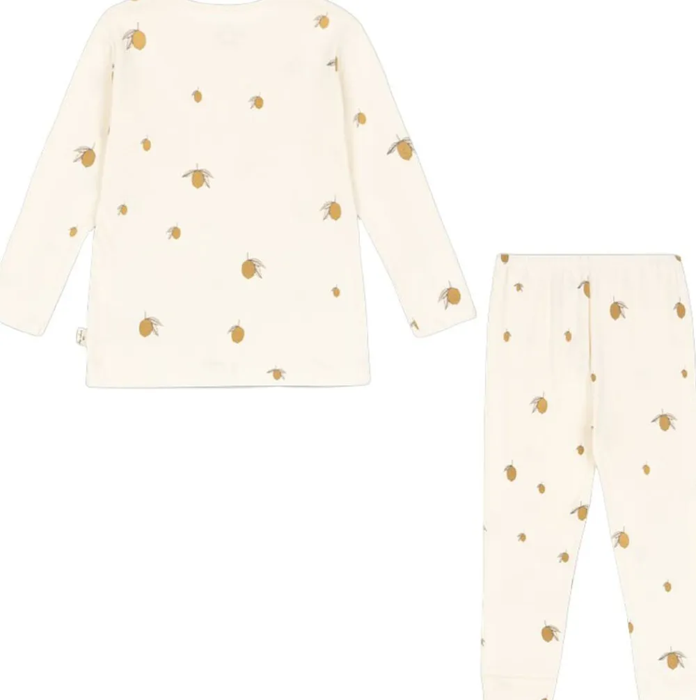 2-delt pyjamas fremstillet i 100% økologisk bomuld. Designet med bløde elastiske manchetter ved ærme- og benåbninger. Bukserne har en elastisk talje.