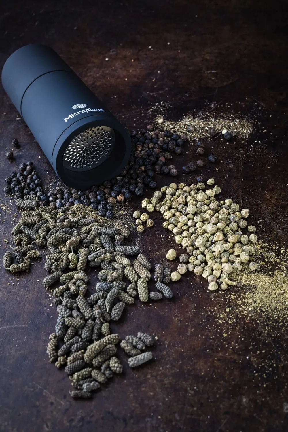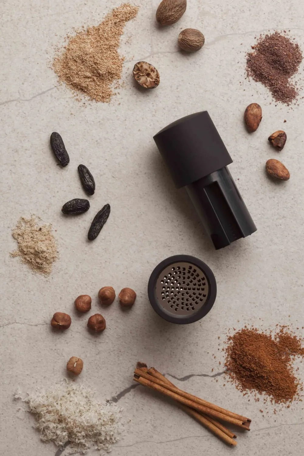 Microplane krydderi og muskatkværn med opbevaringsrum i toppen. Kværner let og ubesværet f. eks kanel, muskat m.m. til det fineste pulver. Vandt en Reddot Award i 2018 for kvalitetsdesign.