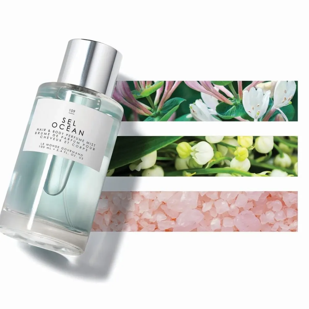 Duften er en ode til vand og en frisk duft til dem, der elsker en salt havbrise. Det er duften af at stå ved vandet, hvor bølgerne plasker mod huden, og brisen er fyldt med muligheder. Sel Ocean, den velduftende mist til hår og krop, stiger op langs kystlinjen og er en lysende, luftig duft, der opfrisker hud, hår og tøj.