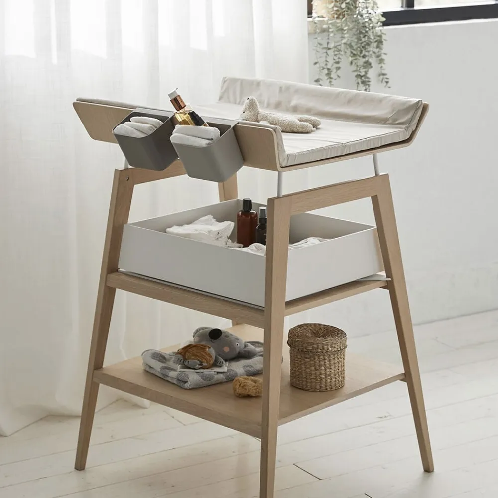 Sæt kulør på dit Leander Linea puslebord med dette smukke puslehyndebetræk fra Leander. Med mange forskellige farvevariationer har du mulighed for at skifte kulør og stil, når du ønsker det. Betrækket er lavet af økologisk bomuld i en stærk lærredskvalitet. På indersiden har betrækket en vandtæt belægning, der forhindrer væsker i at trænge gennem tekstilet og ned i skummet.